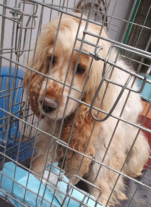 Wir suchen für diesen Cocker-Rüden eine Pflegestelle. Der Rüde hat bisher nur bei einem Vermehrer gelebt und kennt nichts.